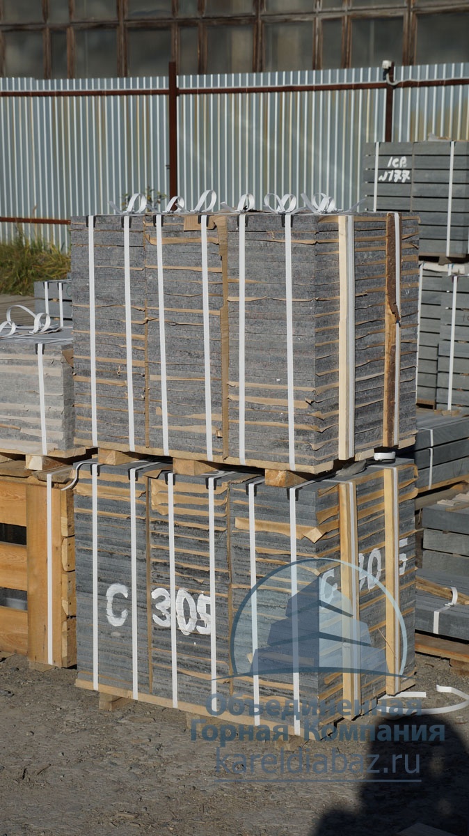 "Объединенная горная компания" предлагает гранитную плитку из габбро-диабаза и дымовского гранита оптом.